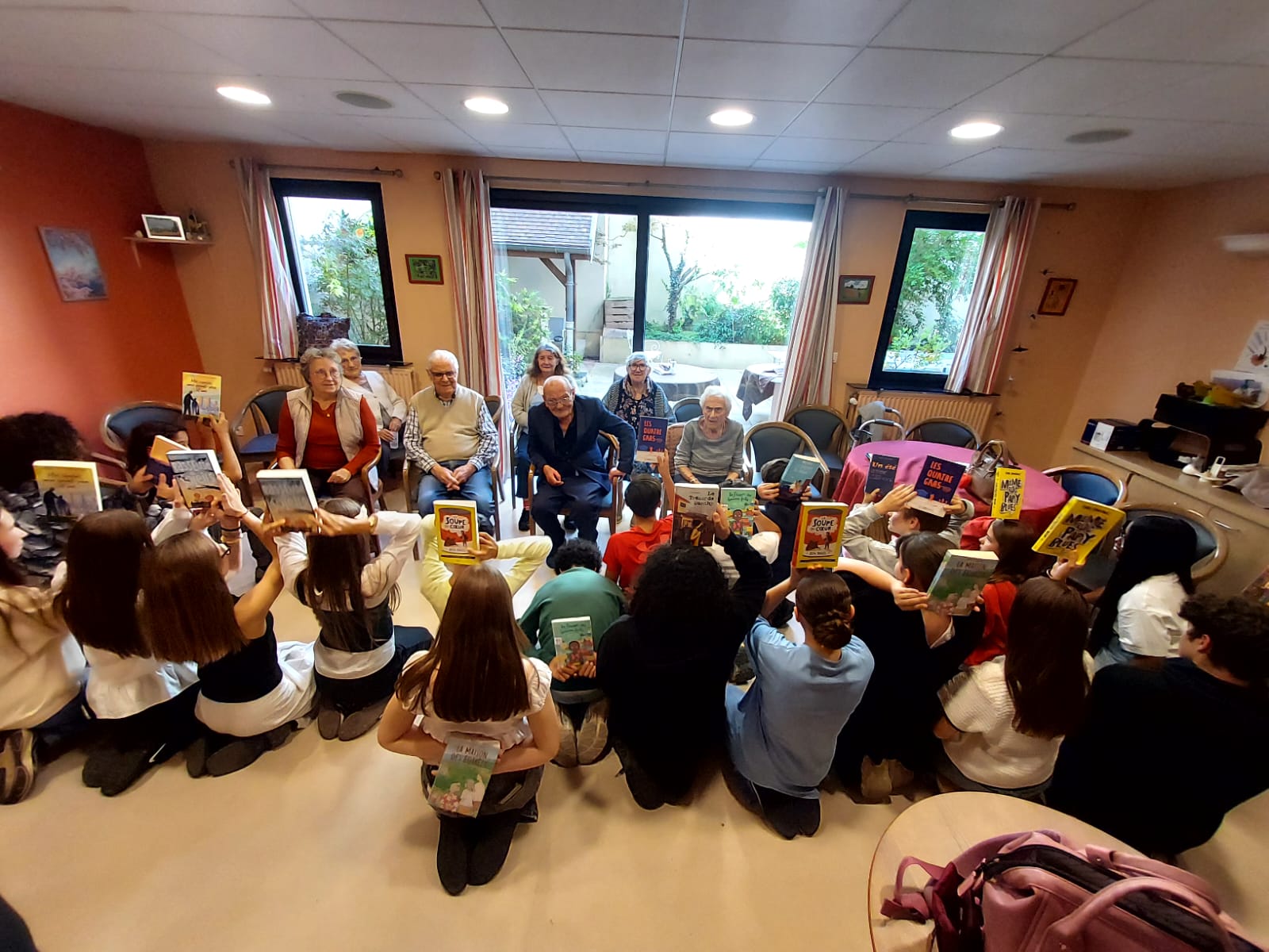 Ce vendredi 10 octobre après-midi la classe de 4ème4 s’est rendue au foyer résidence seniors Jean-André Lauprêtre rue Denon à Chalon-sur-Saône afin de présenter une sélection de romans intergénérationnels. Les élèves ont présenté des affiches en format livre avec des illustrations et un portrait chinois. Il est prévu de retourner en février pour écouter les résidents qui sont amenés à lire également les livres.